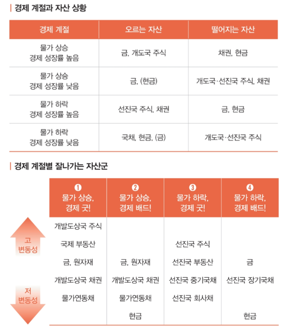 경제에는 사계절이 있다고 하죠. 그리고 그 계절마다 오르거나 떨어지는 자산들이 있고요