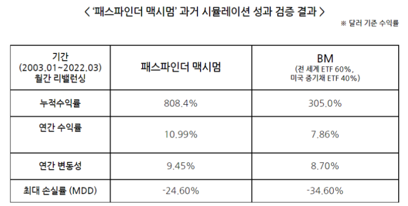 - 패스파인더 맥시멈 : 목표수익률 연 10%, MDD -25%