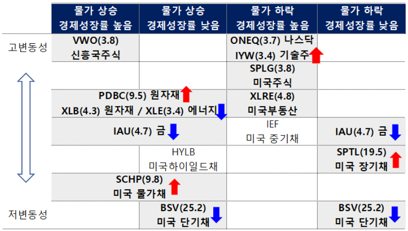 - 거시경제가 중립적인 상황이라는 시그널에 따라 미국 성장산업(에너지, 산업재)와 미국 주식, 안전자산 편입