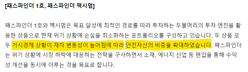 1. 해당 기간 동안 S&P500은 -4.04%, 나스닥은 -3.53% 하락했음. 미국의 주요 지수는 최근 한 달간 하락 추세임 (패스파인더 맥시멈은 -1.3%)
