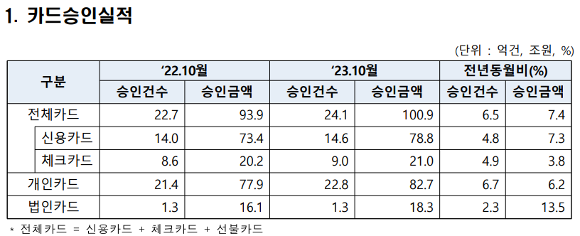 카드승인실적(23년 10월)