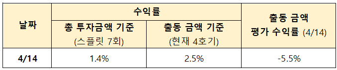 23년 4월 한 달간(3/24 ~ 4/14) 스플릿 투자 현황 및 수익률 리뷰