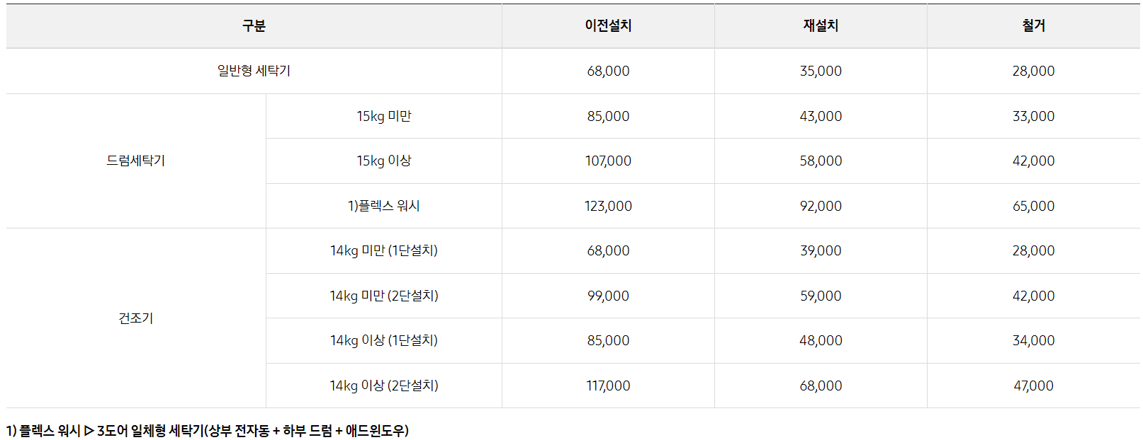 세탁기와 건조기를 이전설치 할 때는 이전설치비 + 이전설치 이동비 (10km 이상) + 사다리차 비용까지 필요하여 약 20만원 정도가 발생합니다. 이사업체에서 철거 및 재설치가 가능한 곳도 있지만 흔하지 않고, 이사업체에서도 추가비용을 요구할 때도 있습니다. 또한 워시타워 같이 일체형으로 설치되었을 경우에는 이사업체에게 맡기기가 부담되긴 합니다.