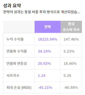 - 11가지 전략 중 백테스트 전체 기간 수익률 2등 18224%