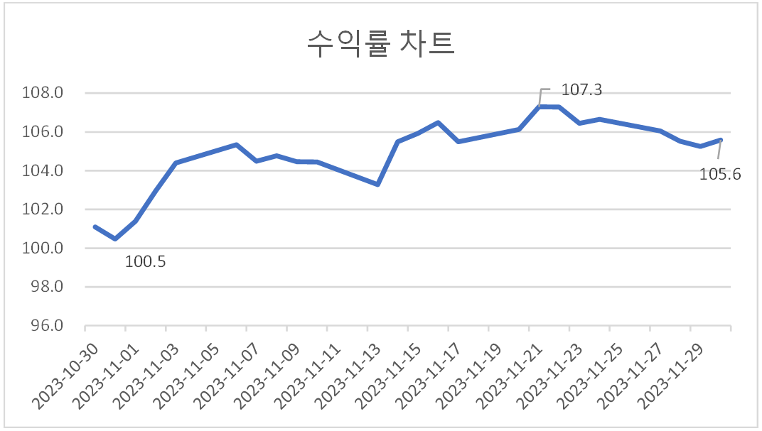 ○ 2023년 11월은 +5.6%의 수익률을 기록했습니다
