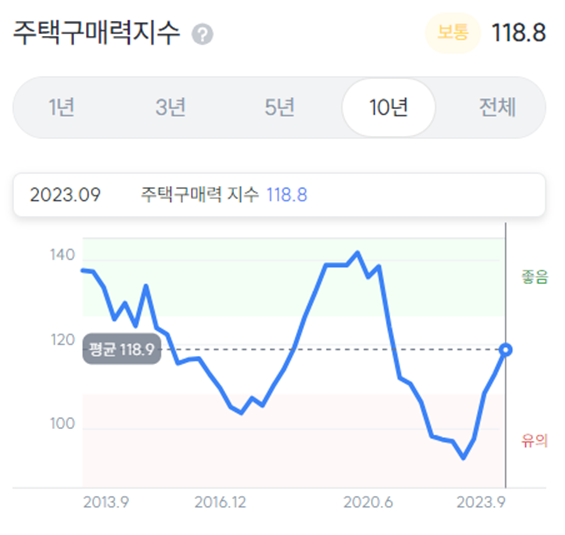 23년 9월 자료 기준 118.8으로 10년 평균에 거의 근접함