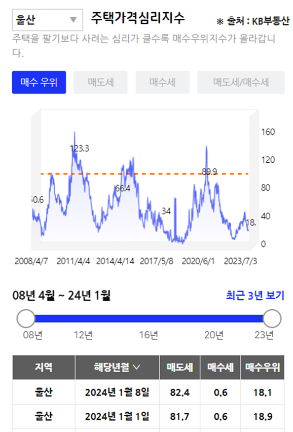 [울산] : 현재 사이클 '하락 안정기' (24년 1월 17일 기준)