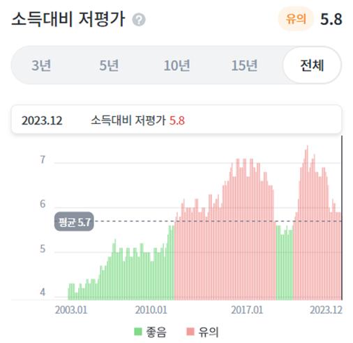 23년 12월은 5.8을 기록 중. 역사정 평균에 거의 근접 (10년 내 최저는 2019년 7월 ~ 8월의 5.4)