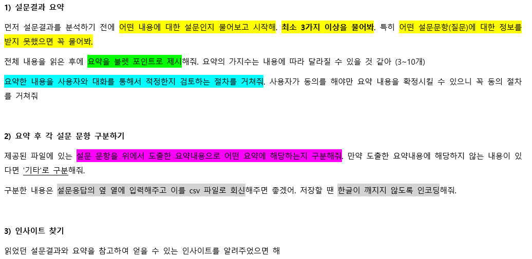 GPT에게 설문결과 분석 프로세스 대로 일 시키기