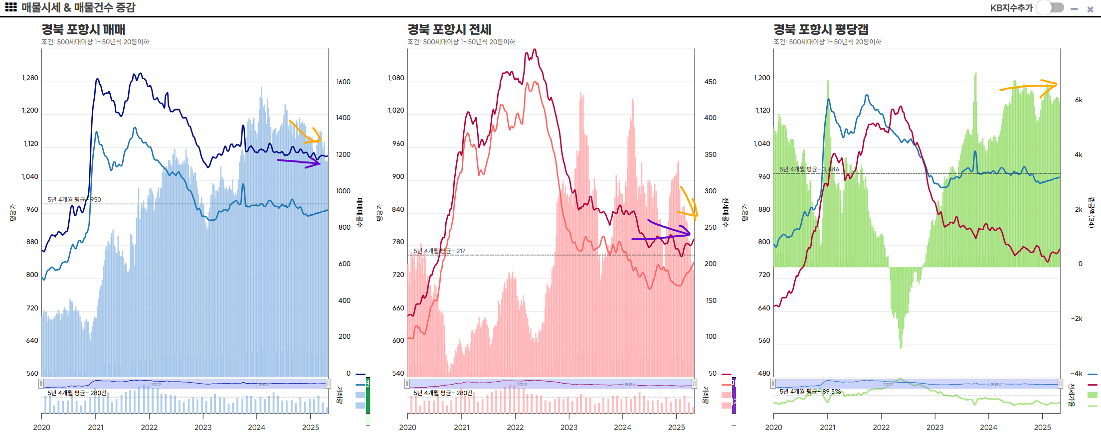 ○ 평당갭 : 평당갭 하락하다가 반등함