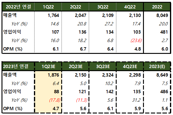 - 판관비 부문에서 퇴직급여 증가 : 1Q22 2억원 → 1Q23 16억원