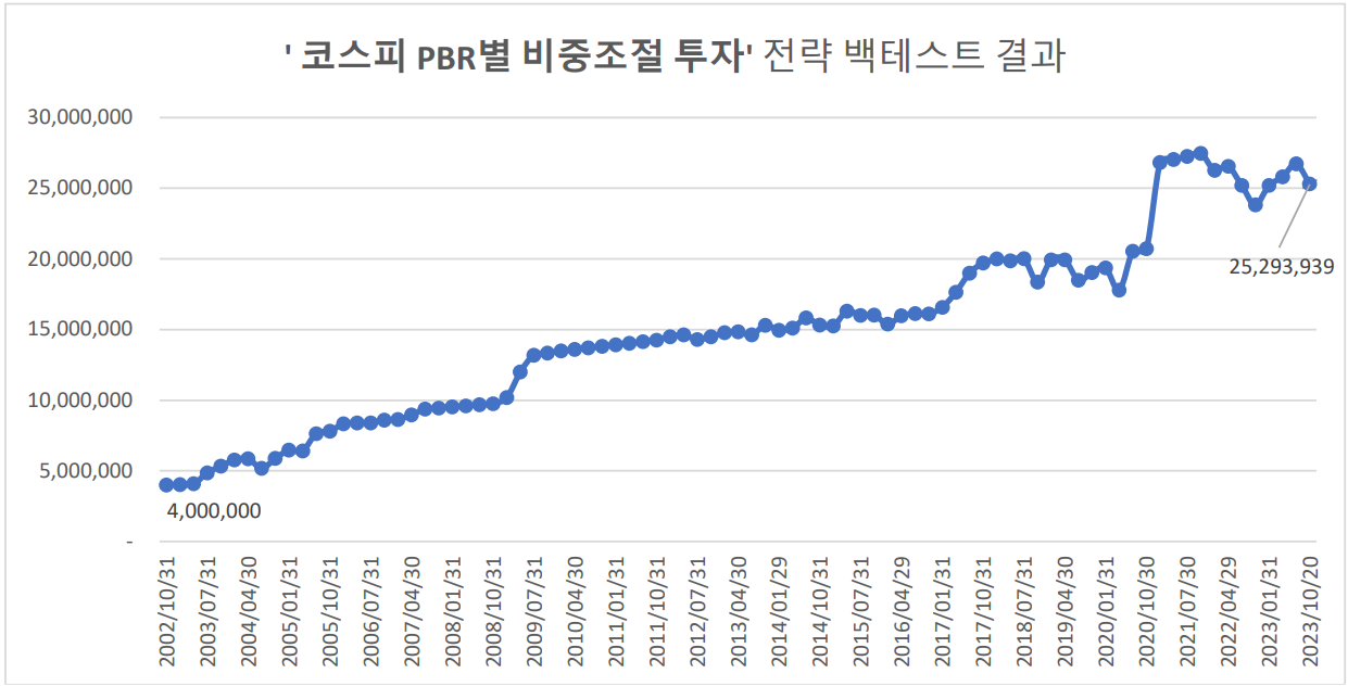 · 비중 조절 : 직전 시즌 5년간 평균 PBR을 기준으로 투자 비중 조절