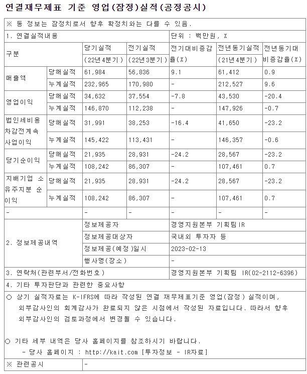 한국자산신탁 4분기 실적 및 22년 실적